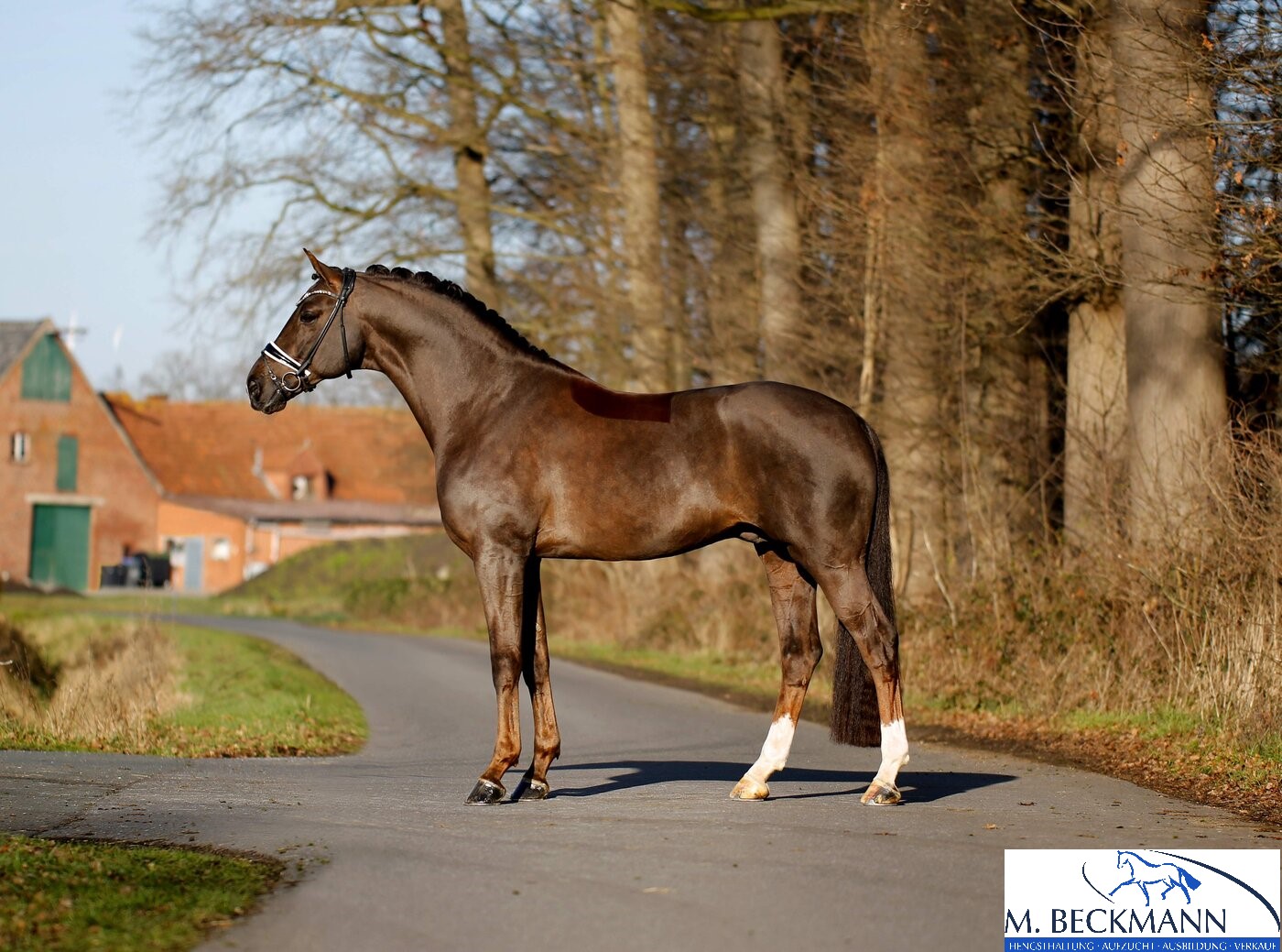 Een schitterende premiumhengst en finalist op de Westfaalse keuring van 2021. Be my Dancer imponeert met zijn uitstekende type, voorbeeldige bouw, uitzonderlijke correctheid en drie sublieme gangen die zijn naam eer aan doen. Hij voltooide zijn 50-daagse test met een indrukwekkende eindscore van 8,76 (draf 8,5 / galop 8,5 / stap 9,0 / rijdbaarheid 9,0). In 2025 won hij de bronzen medaille en werd hij Westfaals kampioen in de rubriek voor 6-jarige dressuurpaarden. Voor zijn uitstekende sportprestaties ontving hij het NRW-voorvoegsel. Hij is enorm populair bij fokkers. Zijn eerste jaargang veulens omvat reeds goedgekeurde zonen, evenals kampioens- en veilingveulens.
