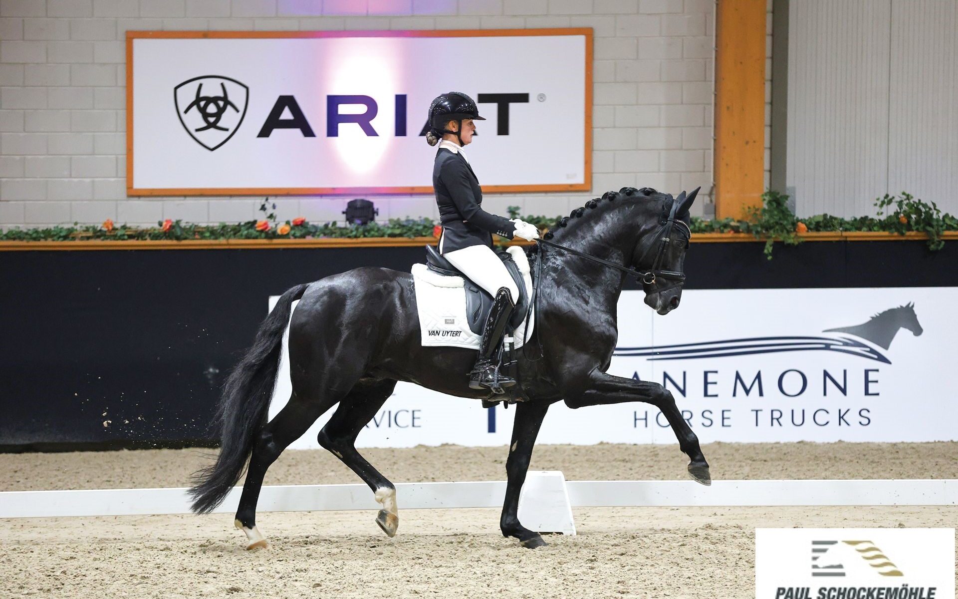 De uiterst elegante Lamborghini U.S. is tweevoudig finalist in de Pavo Cup, telkens met een score van meer dan 80 procent, kan bogen op een tweede plaats in de hengstencompetitie in Kronenberg/NED (87,20 procent) en maakte ook indruk tijdens zijn hengstenkeuring in Nederland met zijn opmerkelijke rijdbaarheid en bergopwaartse beweging met vrijwel ongeëvenaarde schoudervrijheid.